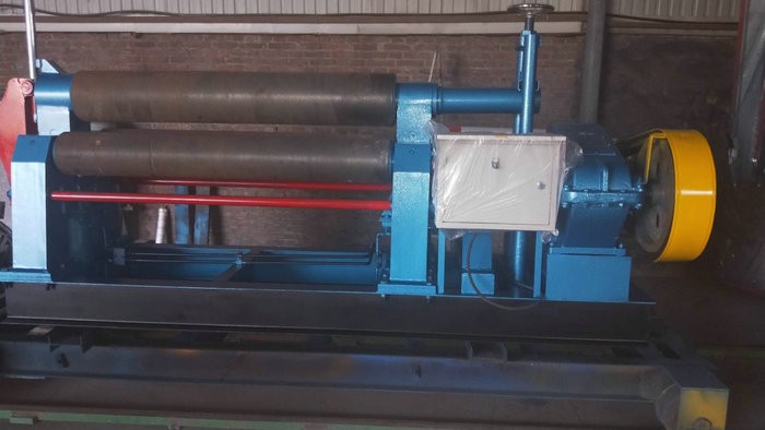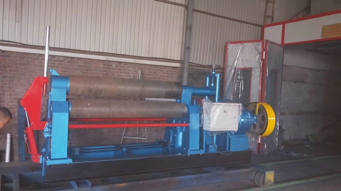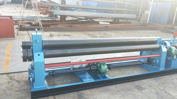 液壓下拉式卷板機(jī)主要特點(diǎn):該機(jī)上輥可以垂直升降,垂直升降的液壓傳動(dòng),通過液壓缸內(nèi)的液壓油作用活塞桿而獲得;下輥?zhàn)餍D(zhuǎn)驅(qū)動(dòng),通過減速機(jī)輸出齒輪嚙合,為卷板提供扭矩,下輥下部有托輥,并可調(diào)節(jié)。上輥呈鼓形狀,提高制品的直線度,適用于超長(zhǎng)規(guī)格各種截面形狀罐。